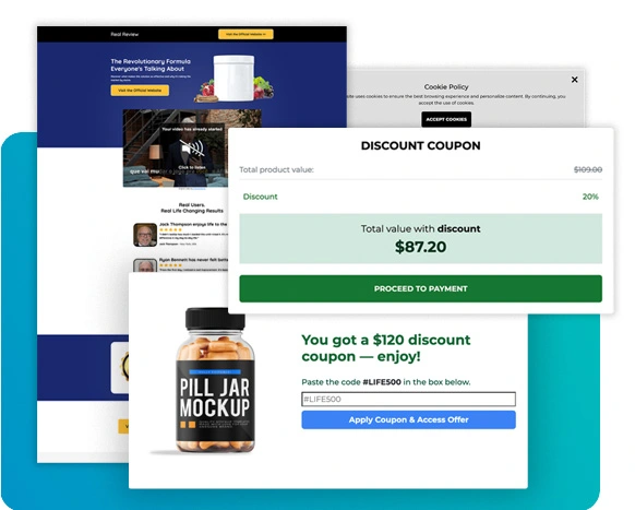 Maximize suas conversões com pop-ups inteligentes que capturam dados antes do usuário ser redirecionado para a página de checkout.